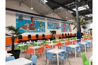 - Une aire de jeux adaptée aux 1/3 ans avec des draisiennes, une piscine à balles, des toboggans, un mini trampoline et un château gonflable.