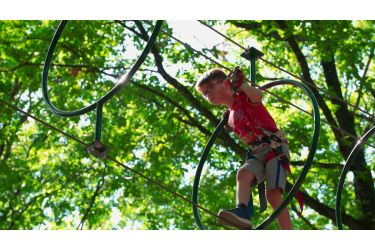 Profitez aussi de 12 parcours accrobranche : progressifs en difficulté et en hauteur, jalonnés de ponts, de filets, de tyroliennes ou de sauts. Vous évoluez de plateforme en plateforme, avec successions de passages plus ou moins périlleux : une expérience impressionnante et délirante !